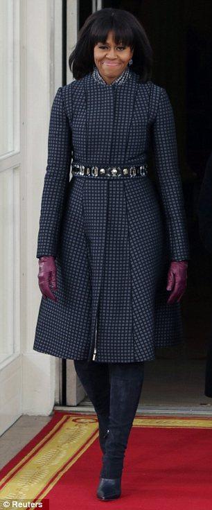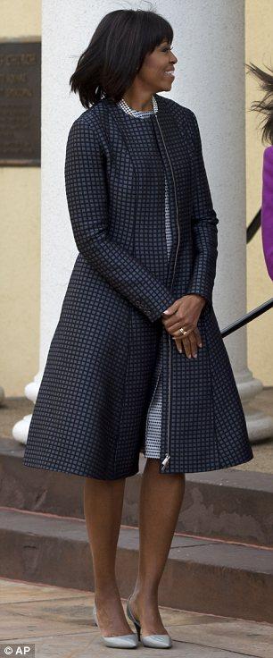 Харин юу өмсөх нь байнга олны анхаарлын төвд байдаг тэргүүн хатагтай Мишель Обамагийн хувьд “Tom Browne”-ы хүрмээр гоёжээ.