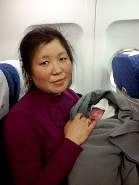 Киргиз бүсгүй онгоцонд хүүхдээ төрүүлжээ