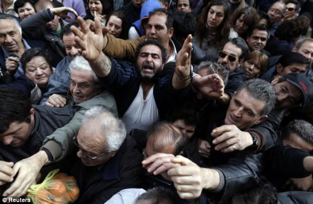 Зургаа дахь жилдээ эдийн засаг нь хямралтай байгаа Грекийн ард түмэн маш хүнд жилүүдийг туулж яваа юм. Гүн хямралын улмаас гадаадаас өр зээл тавин арай ядан амьдралаа залгуулж байгаа Грекийн Засгийн газар улсын төсөв мөнгөө хэмнэхийн тулд цалин, тэтгэвэр тэтгэмжийг хасч, бараг бүх төрлийн татвараа нэмэгдүүлээд байгаа билээ. Дээр нь, ажилгүйдэл бүх цагийн үеийн хамгийн дээд цэгтээ хүрчихээд байгаа учир ажилгүй, орлогогүй болсон грекчүүдэд энэ мэт үнэгүй хоол хүнсний төлөө тэмцэлдэх нь наад захын явдал болжээ.