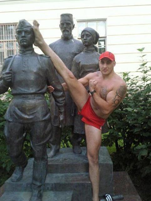 Кикбоксын Оросын аварга, абаканы тамирчин Гиви Соцука эх орны дайчдын хөшөө рүү хөлөө тавьж авхуулсан зургаа интернетэд тавьсан нь Хакаст бөөн дуулиан тарьж байна. Тэрээр Томск хотод Аугаа их эх орны дайнд амь үрэгдсэн эмч, сувилагч, оюутнуудын дурсгалд зориулан босгосон хөшөөг ийн гутаажээ. “Энэ бол өөрийнх нь төлөө амь насаа зориулсан хүмүүс болох баатруудын дурсгалыг гутаасан бүдүүлэг хэрэг.