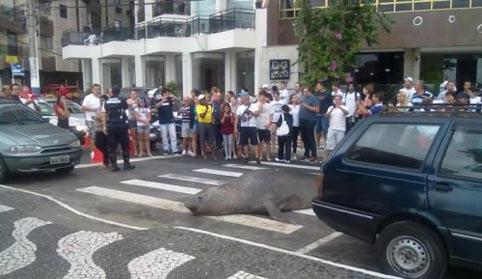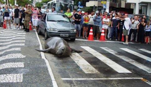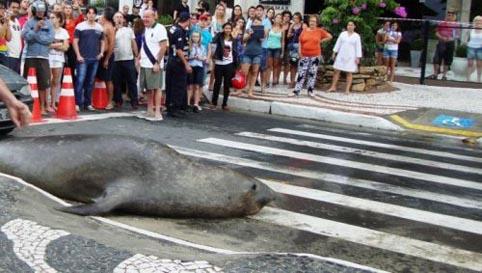 Бразилийн далайн эргийн, амралт сувиллын Балнеариу-Камбориу хотын иргэд сонин үзэгдэлтэй таарч ховор явдлын гэрч болжээ. Гурван метр урт, хагас тонн жинтэй жинхэнэ зэрлэг далайн арслан гэнэт хотын гудамжаар зугаалж гарсна байна. Тэгэхдээ бүр зам гарахдаа явган хүний гарцаар гарснаас болоод замын хөдөлгөөн 20 минут саатахад хүрчээ.