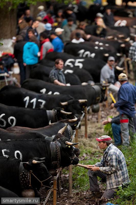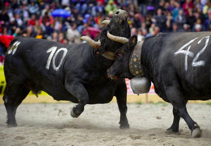 Швейцарийн Апроз тосгонд Херенс үүлдрийн үхрийн уламжлалт тулаан болж өнгөрчээ. Тулаанаар энэ үүлдрийн сүргийн тэргүүнүүд эврээ орооцолдуулан духаараа бие биенийгээ түлхдэг байна. Мэдээж нөгөөгөө ухрааж, тогтоосон заагаас давуулсан нь ялдаг гэнэ. Ийм тулааны үеэр зарим бух бэртэж шархадагч нэг их сүртэй гэмтэл авч, хохирдоггүй гэж зохион байгуулагчид ярьж байна. Херенс үүлдрийн үхэр нь нэлээд догшин төрхтэй учир бухнууд нь үргэлж тэмцэлдэж байдаг болохоор ийм тэмцээнийг уламжлал болгон зохион байгуулдаг гэнэ. Эндээсээ шалгарсан бухнуудыг заримдаа бүс нутгийн болон, өөр уламжлалт тэмцээнүүдэд илгээж оролцуулдаг гэнэ. Нутгийн фермерүүд өөр өөрийн сүргийн тэргүүнийг энэ тэмцээнд оруулж гайхуулах дуртай байдаг юм байна.