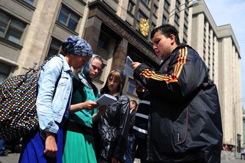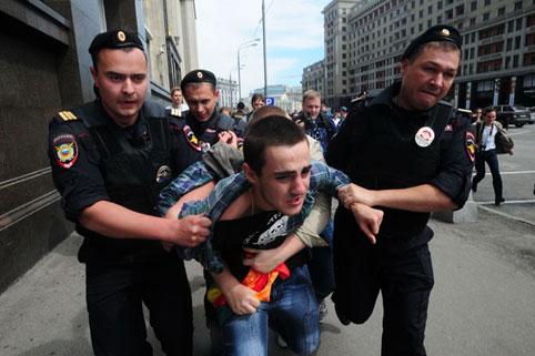 ОХУ-ын нийслэл Москвад бэлгийн цөөнх ижил хүйстнүүдийн жагсаал яг Төрийн думын барилыг дэргэд болж шуугиан тарилаа. Нийслэлийн аюулгүй байдлын асуудал хариуцсан газрын дарга Алексей Майоров тэднийг ийм арга хэмжээ зохион байгулуна гэж ямар ч зөвшөөрөл аваагүй гэж байна. Тэд Төрийн думын барилгын дэргэд уриа лоозон барьж ирсэн ч нэг эрэгтэй очиж нүүр лүү нь цохьжээ. Тэднийг цагдаагийнхан саатуулаад байтал дахиад хэдэн бүсгүй ирж жагссаныг бас саатуулжээ.: Ийм байдлаар хууль сахиулагчид 30 орчим хүнийг баривчилсан байна. Одоо Төрийн думын байрны дэргэд ОМОН-ы шуурхай бүлэг, цагдаагийнхан жижүүрлэж байгаа юм байна.