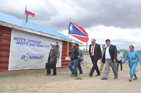 УИХ дахь АН-ын дарга Д.Эрдэнэбатын уулзалт дархадын гурван суманд үргэлжиллээ. Дархадууд хэзээний л цэцэн цэлмэг хүмүүс. Тиймдээ ч олонхийн бүлгийн дарга гэдэг чинь овоо дориун яриатай, олон таван үггүй, бодлого ярьсан хүн байна лээ хэмээн үнэлж байсан юм. УИХ-ын гишүүн, УИХ дахь АН-ын бүлгийн дарга Д.Эрдэнэбат манай хоёр нэр дэвшигч өнгөрсөн сонгуулиар туг тойрч чадаагүй учраас хөгжлийн бодлогыг хэрэгжүүлэх ажлыг хийж буй Хөвсгөлийн ард түмнийг дэмжиж ажиллах үүрэг надад өгсөн юм хэмээн уулзалт хийж яваа шалтгаанаа онцоллоо. Тэрбээр, “Нийгмийн асар том өөрчлөлт явж байгаа. Авах гээхийн ухаанаар хандах ёстой бид. Монгол Улсад ардчилал үүсч хөгжөөд 24 жилийн хугацаа өнгөрч. Хүний хоёр үе өнгөрсөн байна. Эхний арван хоёр жилийг социализмаас татгалзаж эхэлсэн үе байсан. Залуус маань боловсролын их сонин үеийг өнгөрүүлсэн. Хөдөлмөр хийх шаардлагатай юм уу гэх бодолтой байсан. Том үйлдвэр байхгүйгээс шалтгаалаад хүмүүс өөрийнхөө жижиг амьдралаар амьдраад сурчихсан байсан. Одоо энэ бүхэн өөрчлөгдөнө. Эргээд энэ замруугаа хальтирч болохгүй. 20 гаруй жил барьж чадаагүй үйлдвэрийг хоёр жилд яаж барих вэ гэдгээ хайж байна. Төрд шургалсан авлигачдаас бид ард түмний мөнгийг авах гэж хичээж байна. Өнгөрсөн хугацааны алдаа оноог засах гэж хичээж байгаа. Ингэсний төлөө бид доромжлуулж байна. Гэхдээ бид ухрахгүй. Бидэнд ухрах зам байхгүй. Аль нэг намыг би энд нэрлэхгүй. Өмнөх сайд дарга нар хариуцлагагүй гэрээ хийж Оюутолгойг алдах дөхсөн. Бонд босгож бид эдийн засгаа аварсан. Арьс шир боловсруулах үйлдвэр барихаар ажиллаж байна. Үлдсэн мөнгөө тэтгэвэр цалин та бүхний сум хөгжүүлэх мөнгөнд зарцуулж байна. Худлаа ярихгүй, хоосон амлахгүй үнэнээр явмаар байна, өнөөдрөөс эхлээд” хэмээн үгээ өндөрлөж, энэ бүхэнд Хөвсгөлийн ард түмний дэмжлэг юу, юунаас эрхэм байгааг онцолсон юм.