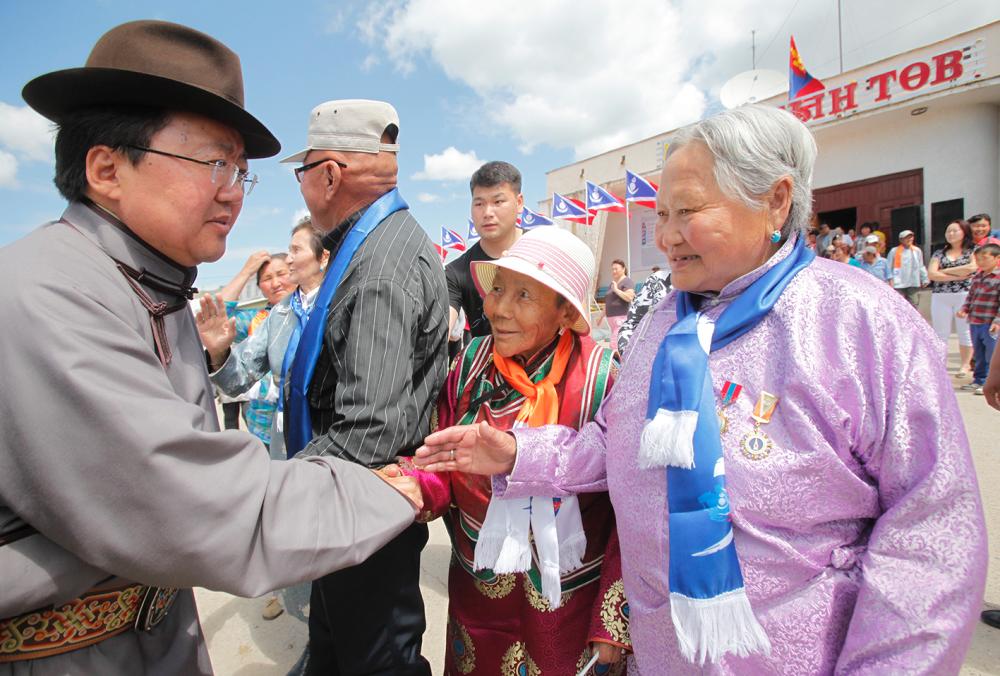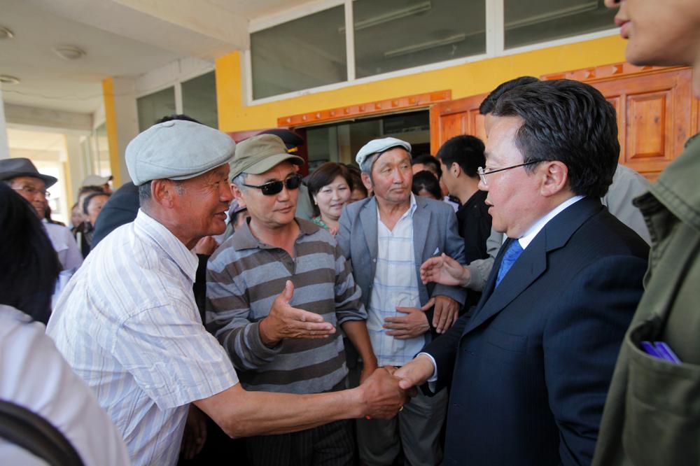 Монгол Улсын Ерөнхийлөгчийн сонгуульд нэр дэвшигч Ц.Элбэгдорж Баянгол, Мандал суманд ажиллахдаа малчид, ногоочидтой уулзаж явлаа. Баянгол сумын нутаг Дэрстэд зусч, хурдан морьдынхоо уяа сойлгыг тааруулж буй сумын алдарт уяач Р.Батжаргалынд аяны дөрөө мулталж түр саатан морь унаж, айл саахалтын хүмүүстэй амар мэндээ мэдэлцэв.