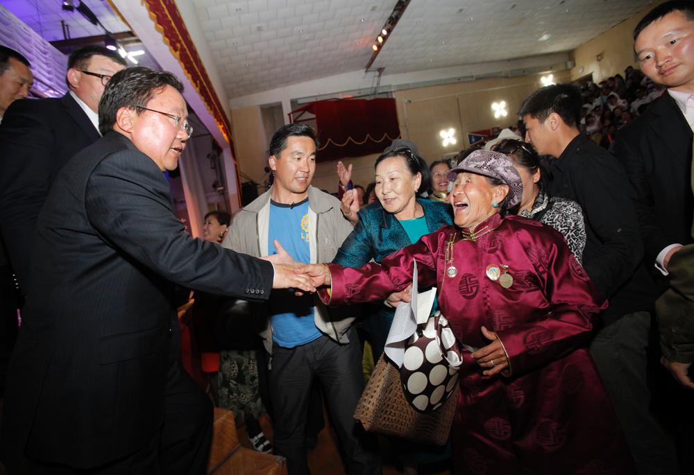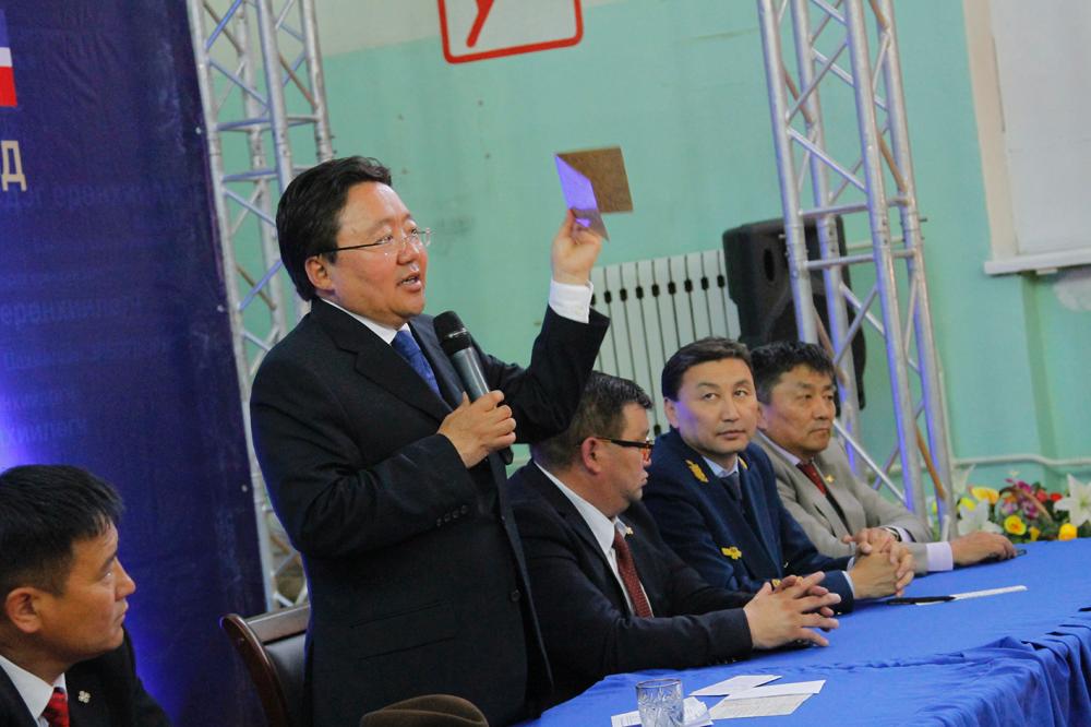Монгол Улсын гадаад нэр хүнд өндөр байгаагийн ачаар өнгөрсөн оны сүүлээр 1,5 тэрбум ам.долларын “Чингис бонд”-ыг гаргасан. Түүгээр шинэ төмөр зам барих, цахилгаан станцуудыг нэмж байгуулах, нүүрснээс бензин, шатахуун гаргах зэрэг бүтээн байгуулалтын ажлуудыг өрнүүлнэ гэдгийг хэлэв. “Эдгээрийг хийхэд төрийн тогтвортой байдал чухал. Ерөнхийлөгч, УИХ, Засгийн газар нэг чигт харж байж бүтээн байгуулалтаа явуулна. Үүлэн чөлөөний нар шиг энэ үеийг ашиглая” гэлээ. Баянгол сумын иргэд ардчилсан Ерөнхийлөгчөө сонгуульд дэмжинэ гэдгээ амлаж үлдлээ.