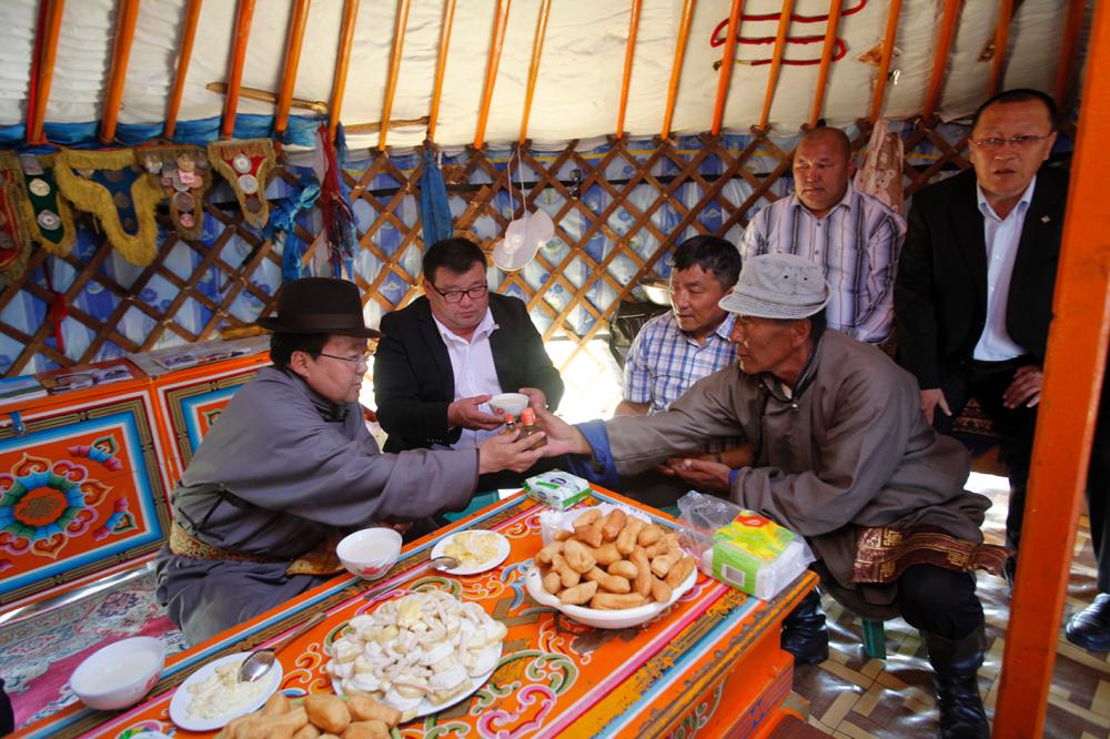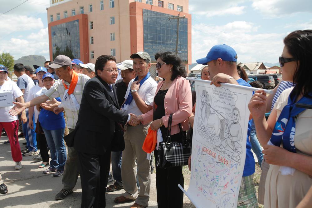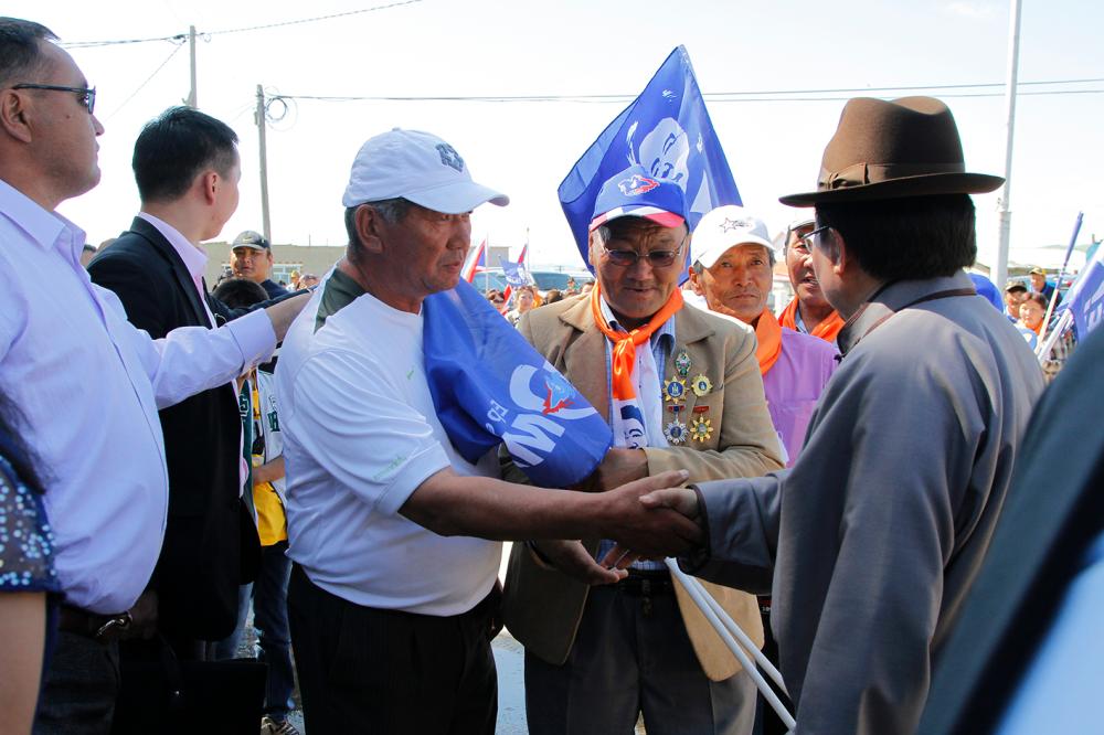 Монгол Улсын алдарт уяач, аймгийн хурц арслан “Орос” хэмээх Болд, Баянгол сумын алдарт уяач С.Батмөнх, Дэрстийн “морь шинжээч” “Хөл” хэмээх Пүрэвдорж нар Ерөнхийлөгчийн сонгуульд нэр дэвшигч Ц.Элбэгдоржтой амар мэндээ мэдэлцэх адуу малын тарга хүч, морьдын уяа сойлгын талаар ярилцлаа. Сумын алдарт уяач Р.Батжаргал нэр дэвшигч Ц.Элбэгдоржид хурдан бор морь бэлэглэж сонгуулийн ажилд нь амжилт хүслээ.