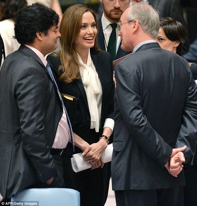 Жүжигчин Анжелина Жоли НҮБ-ын сайн санааны элчийн хувиар Аюулгүйн зөвлөлийн хуралд оролцож, дайн байлдаантай бүс нутагт амьдарч буй эмэгтэйчүүд хэрхэн хүчирхийллийн золиос болж буйг талаар мэдэгдэл хийж, улс орнуудыг үүний эсрэг шийдвэртэй алхам хийхийг уриаллаа.