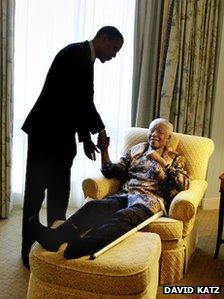 АНУ-ын Ерөнхийлөгч Б.Обама Өмнөд Африкт албан ёсны айлчлал хийхээр хүрэлцэн ирээд байгаа ч тус үндэстний бараг шүтээн нь болсон Н.Манделаг эргэж очихгүй бололтой. Нас дээр гарсан Н.Манделагийн олон жилийн тэртээд шоронд хоригдож байхдаа олсон уушигны өвчин нь өдгөө дахин сэдэрч, биеийн байдал нь маш муу байгаа. Нөхцөл байдал сайнгүй байгаа учраас Б.Обама эмнэлэгт ирсний хэрэггүй байх гэж Н.Манделагийн гэр бүлийнхэн өөрсдөө хүссэн байна. Б.Обама ч эмнэлэгт очиж, зургаа авахуулах нь чухал биш гэж мэдэгджээ. Хоёулаа улсынхаа анхны хар арьст Ерөнхийлөгч, Нобелийн энхтайвны шагналтай гээд ижил төстэй зүйл ихтэй Б.Обама, Н.Мандела нар 2005 онд Обамаг сенатор байх үед уулзаж байсан юм. Домогт Ерөнхийлөгч Н.Мандела Б.Обамагийн гэр бүлд элэгсгээр ханддаг бөгөөд өнгөрсөн онд тэргүүн хатагтай Мишель Обама хоёр охиныхоо хамт түүний гэрт зочилж байсан юм.