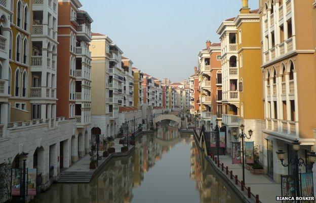Шанхайгаас холгүйхэн орших Сонгжиан дүүрэгт шинээр байгуулсан Темза хотхон бол үүний тод жишээ. Темза хотхоныг Английн классик хотын загвараар бүтээсэн бөгөөд эндэхийн байшин барилга, сүм дуган, ресторан зоогийн газар, утасны бүхээг хүртэл Англид ирсэн мэт сэтгэгдэл төрүүлэхээр. Гэвч 10 мянган хүн амьдрахад зориулж босгосон энэ хотхоны ихэнх байшин барилгыг албан газар, компаниуд худалдан авсан болохоор хөл хөдөлгөөн бараг байхгүй, ханхай хоосон харагдах бөгөөд хотын тухай сурвалжлахаар очсон барууны нэг сэтгүүлчийн хэлснээр яг л Жим Кэрригийн тоглодог “Трумэний шоу” ткинонд гардаг аварга том зураг авалтын талбайг санагдуулам аж.
