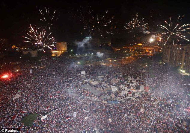 Египетийн арми өчигдөр орой мэдэгдэл гаргаж, Ерөнхийлөгч Мухаммед Мурсиг цаашид төр удирдах эрхгүй, огцорсон гэдгийг зарлаад, шилжилтийн үед улс орныг Үндсэн хуулийн шүүхийн тэргүүн Адли Мансур удирдана гэсэн юм. БХЯ-ны сайд Абдельфаттах ас-Сиси телевизээр мэдэгдэл хийж Үндсэн хуулийн үйл ажиллагаа, сайд нарын танхимын үйл ажиллагааг зогсоож, Ерөнхийлөгчийн шинэ сонгууль явуулах тухай мэдэгдсэнээр Тахрирын талбайд цугласан хэдэн зуун мянган жагсагч баяр хөөр болжээ.