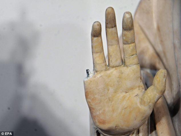 Италийн сүмд үзмэр үзэж явсан Америк жуулчин санамсаргүйгээр асар үнэ цэнэтэй урлагийн бүтээлд сэв суулгаж орхижээ. Америкаас Италид гэр бүлээрээ жуулчилж явсан Патрик Бродерик хэмээх эмч залуу музейд байсан Гэгээн Мэригийн баримлын гарыг нь өөрийнхөө гартай жишиж үзэх гээд хүрэх үед баримлын чигчий хуруу салаад уначихсан байна. Харамсалтай нь, энэхүү баримал 600 жилийн түүхтэй, асар өндөр үнэ цэнэтэй эд байжээ. Саваагүй зангаасаа болж урлагийн ховор нандин бүтээлийг гэмтээж орхисондоо Патрик ичиж харамсахын зэрэгцээ асар өндөр үнэ төлбөрт унавал яана хэмээн айжээ. Гэвч музейн удирдлага түүнийг баривчилж шалгаснаас бус сэргээн засах нөхөн төлбөр шаардаагүй байна.