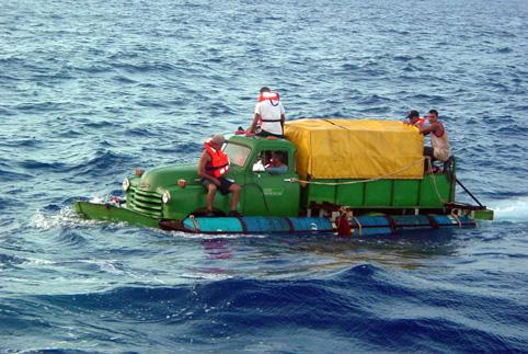 1951 оны “Шевроле” ачааны машиныг завь болгон өөрчлөөд Америкийн Флоридагийн эрэг хүрэхээр яваа куба цагаачид. 2003 оны долдугаар сарын 16.
