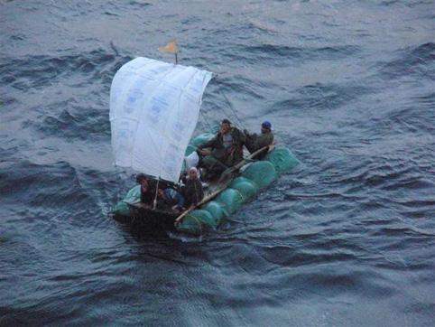 Багамын арал орчим гар доорхи материал ашиглан хийсэн салаар хөвж яваа Кубын хууль бус цагаачид.