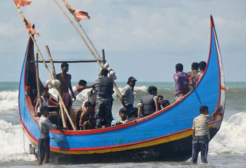 Бангладешийн хилчид Индонез очихоор явсан Мьянмарын лалын шашинтнуудыг ачсан онгоцыг живсний дараа амьд үлдэгсдийг нь эрэг дээр гаргаж байгаа нь. 2012 оны арваннэгдүгээр сарын 7.