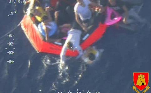 Мальта арлын орчим живсэн онгоцноос амьд гарсан цагаачид нисдэг тэрэгнээс аврагчдын шидсэн үлээх завин дээр. 2013 оны аравдугаар сарын 11.