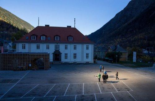Гаустатоппен уулын дундах нарийхан хөндийд оршиж жилийн 5-6 сард нь нар үздэггүй Рьюкан хотынхон хиймэл нартай болж нар хэрхэн гэрэлтдэгийг харах боломжтой болсон байна. Тэд зэргэлдээх уулын орой дээр асар том, 600 хавтгай дөрвөлжин метр толь байрлуулснаар ийм боломжтой болжээ. Энэ толийг компьютерээр удирдан чиглэлийг нь өөрчилж нарны гэрлийг яг хот дээр тусгадаг байна.