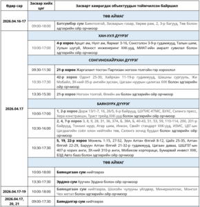 Өнөөдөр цахилгаан шугам тоноглолд хийгдэх засвар үйлчилгээний хуваарь