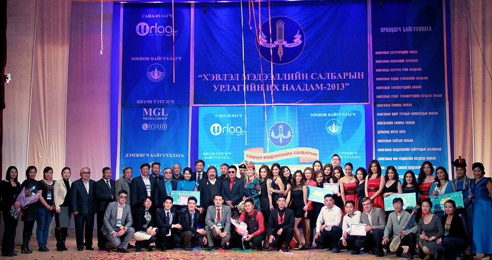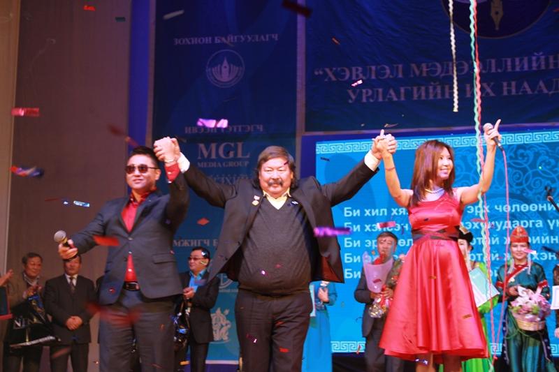 Монгол улсад үндэсний сэтгүүлзүйн салбар үүсч хөгжсөний 100-н жилийн ойн хүрээнд зохион байгуулагдсан “ХЭВЛЭЛ МЭДЭЭЛЛИЙН САЛБАРЫН УРЛАГИЙН ИХ НААДАМ”-ын эцсийн шалгаруулалт буюу шагнал гардуулах ёслолын ажиллагаа, гала тоглолт өчигдөр Нийслэлийн Улаанбаатар Чуулгын тайзнаа бүтэн 4 цагийн турш үргэлжилж шилдгийн шилдэг оролцогчдоо тодруулж Болор цом, Мөнгөн шагнал, “Дархан нэхий” ХК-ны 300.000 мянган төгрөгний эрхийн бичгийг гардууллаа.
