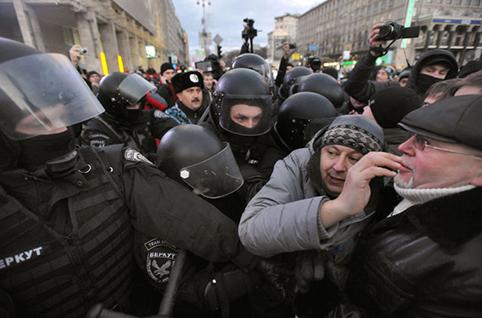 Украины Засгийн газар Европын холбоотой хийж байсан хэлэлцээрэ эзогсоосныг эсэргүүцэж Киевт эхэлсэн сөрөг хүчний жагсаалд оролцогсод Ерөнхийлөгчийн ордон руу булдозер хөлөглөн дайрч байна гэж нүдээр үзсэн хүмүүс Twitter-тээ бичжээ. Жагсагчид гал цацруулагч, чулуу, утаа тавигч шидэлж байгаа юм байна. Цагдаагийнхан жагсагчдын хооронд мөргөлдөөн болж Банкны гудамжнаас буун дуу сонсогдож эхэлсэн байна. “Эрх чөлөө” хөдөлгөөний бэлгэ тэмдэгтэй цамц өмссөн залуучууд Үйлдвэрчний зөвлөлийн ордны орох хаалганы дэргэдэх ажиглалтын камеруудыг эвдэлж, шил цонхыг нь хагалан дайрч орсон гэж УНИАН дамжуулсан байна.