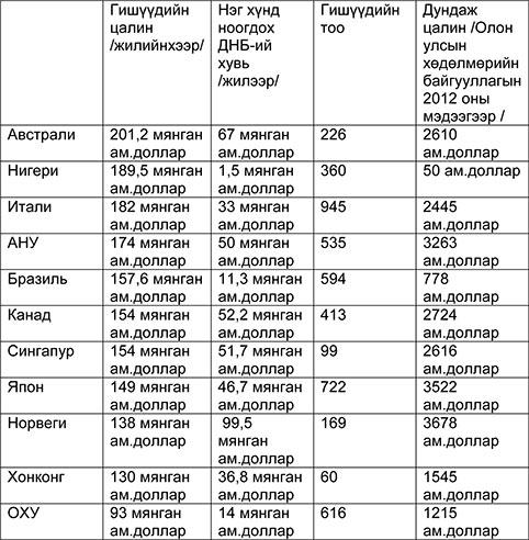 Ингэхэд эрхэм уншигч та, дэлхийн хэмжээнд парламентын гишүүд хэдий хэмжээний цалин авдаг талаар сонирхож байсан уу? Тэгвэл сонирхуулъя. Гэхдээ улс болгоныхыг тоочвол сонины нүүр хүрэлцэхгүй. Иймд ямагт анхаарлын төвд байдаг цөөн хэдэн орны парламентын гишүүдийн авдаг жилийн цалингаас сонирхуулъя.