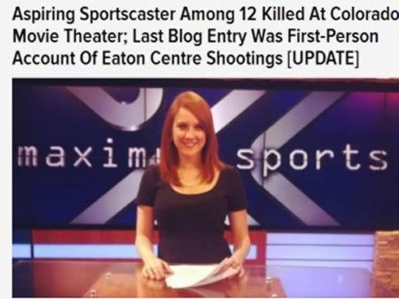 Колорадо мужийн Орор хотын кино театрт болсон аймшигт аллагын мэдээлэл тархаж эхлэхэд шаргал үстэй, инээмсэглэсэн Жессика Репфильд бүсгүйг амь алдлаа хэмээн зураг нь тархаж эхэллээ. Техасын спортын тоймч, блогч энэ бүсгүй энэ аллагад өртөж амь алдсан 12 хүний нэг байлаа.