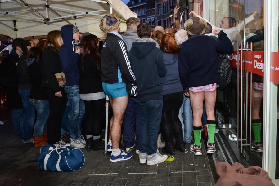 Испанийн бэлэн хувцасны сүлжээ Desigual дэлгүүр белгийн Намюр хотод салбараа нээж шинэ оноор хаалгаа дэлгэжээ. Тэгэхдээ компани өнгөрсөн баасан гарагийн өглөө дэлгүүр нээхэд зөвхөн дотуур хувцастайгаа ирсэн эхний 100 худалдан авагчийг бүрэн хувцалана гэж зар тараасан нь белгичүүдийг шөнөжин дугаарлаж, өглөө нь нүцгэлэн дэлгүүрт ороход хүргэсэн байна.