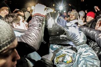 Луценкогийн гэргий Иринагийн хэлж байгаагаар бол сөрөг хүчнийхэн нэгдүгээр сарын 10-ны шөнө Киевийн тусгайгийн “Беркут”- ийн хүмүүс олноороо цугларсан Святошины удирдах газрын дэргэд байсан юм байна. Жагсачид, цагдаагийнхан мөргөлдөж эхлэхэд Луценко тусгай тасгийнхан, сөрөг хүчнийхнийг зохицуулан ойлголцуулах гэж байтал “Беркут”-ын цагдаа нар экс сайдыгаа толгой түрүүгүй балбаж эхэлсэн гэнэ. Экс сайдын нүдний шил хагарч өөрөө газар унан ухаан алджээ.