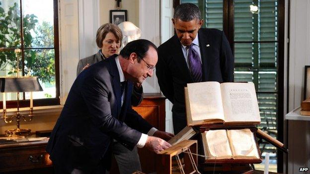 Францын Ерөнхийлөгч Франсуа Олланд АНУ-д төрийн айлчлал хийхээр ганц биеэр хүрэлцэн ирээд байна. Хэдхэн хоногийн өмнө тэргүүн хатагтайгаасаа салж, улс төрийн рейтинг нь ч урьд өмнө байгаагүй хамгийн доод түвшиндээ хүрчихээд байгаа Францын Ерөнхийлөгч зориулан Цагаан ордон төрийн хүндэтгэлийн зоог бэлтгээд байна. Гэхдээ Ф.Олландын айлчлалын үеэр өрнөх албан хэлэлцээрүүд хүндэтгэлийн арга хэмжээнээс илүү чухал гэдэг нь ойлгомжтой. Тэрээр АНУ-ын Ерөнхийлөгчтэй Ираны асуудлаас эхлээд хоёр улсын худалдаа, дэлхийн цаг уурын өөрчлөлт зэрэг олон сэдвээр яриа өрнүүлэхээр төлөвлөжээ. Тэдний энэ урт яриа Виржиния дахь Ерөнхийлөгч Томас Жефферсоны гэр рүү хамтдаа нисэх үед ч үргэлжилжээ. АНУ-ыг үндэслэгчдийн нэг, мөн тус улсын Франц дахь төлөөлөгч асан Томас Жефферсон гэрт хоёр Ерөнхийлөгч зочилсны зэрэгцээ Виржиниягийн их сургуулийн кампусаар оржээ. Ф.Олланд өндөр дээд хэмжээний яриа хэлэлцээрээ дуусгасны дараа АНУ-ын Цахиурын хөндийд зочилж Facebook, Twitter, Google зэрэг компанийн удирдлагуудтай уулзах юм байна.