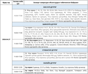 Өнөөдөр цахилгаан шугам тоноглолд хийгдэх засвар үйлчилгээний хуваарь