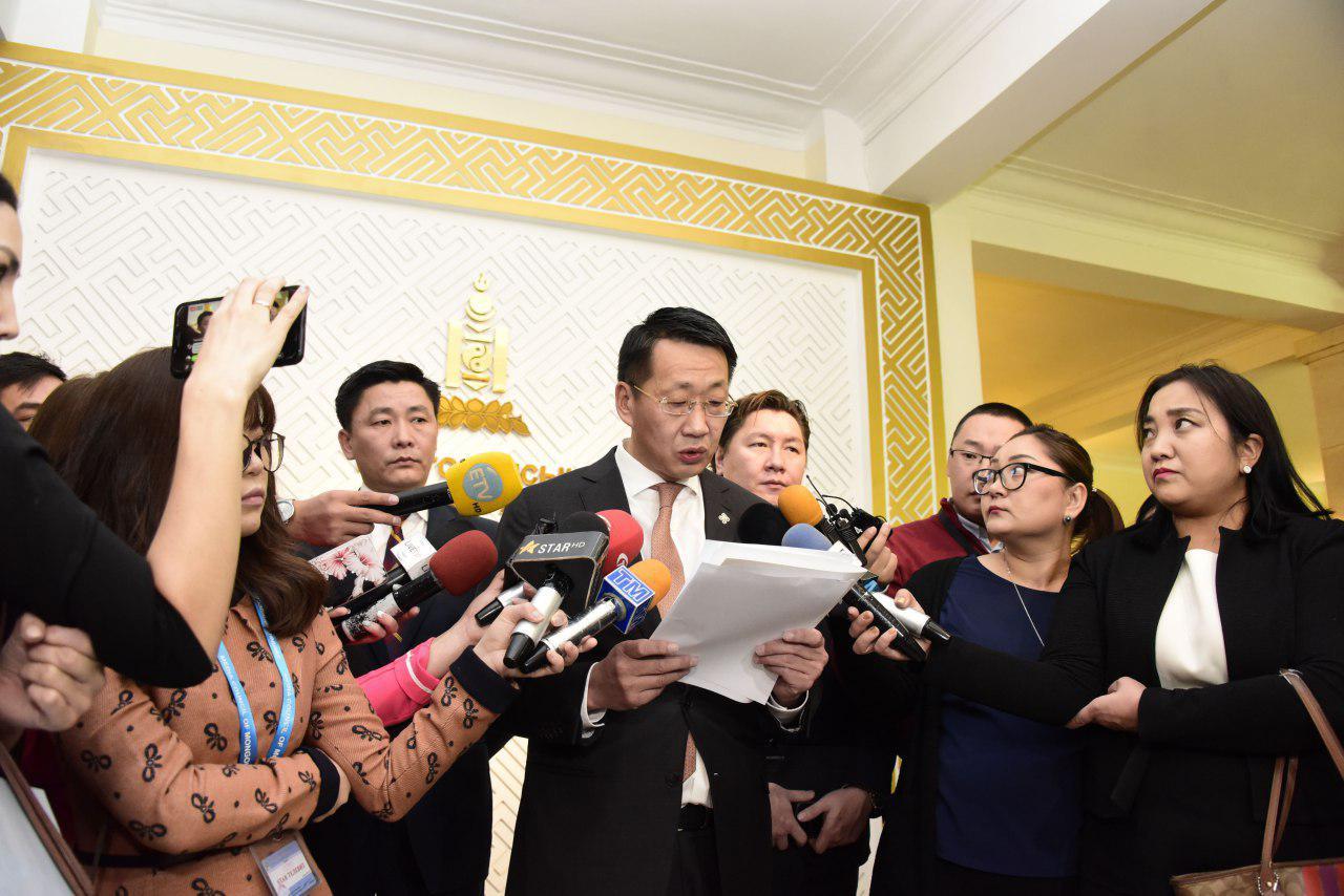 Үүсээд буй нөхцөл байдалтай холбогдуулан Монгол Улсын Их Хурлаас Монгол Улсын Ерөнхий сайд У.Хүрэлсүхэд шаардлага хүргүүллээ. "Шаардлага хүргүүлэх тухай" албан бичгийг Улсын Их Хурлын дэд дарга Л.Энх-Амгалан хэвлэл мэдээллийнхэнд танилцуулав. Шаардлагыг бүрэн эхээр нь толилуулъя.