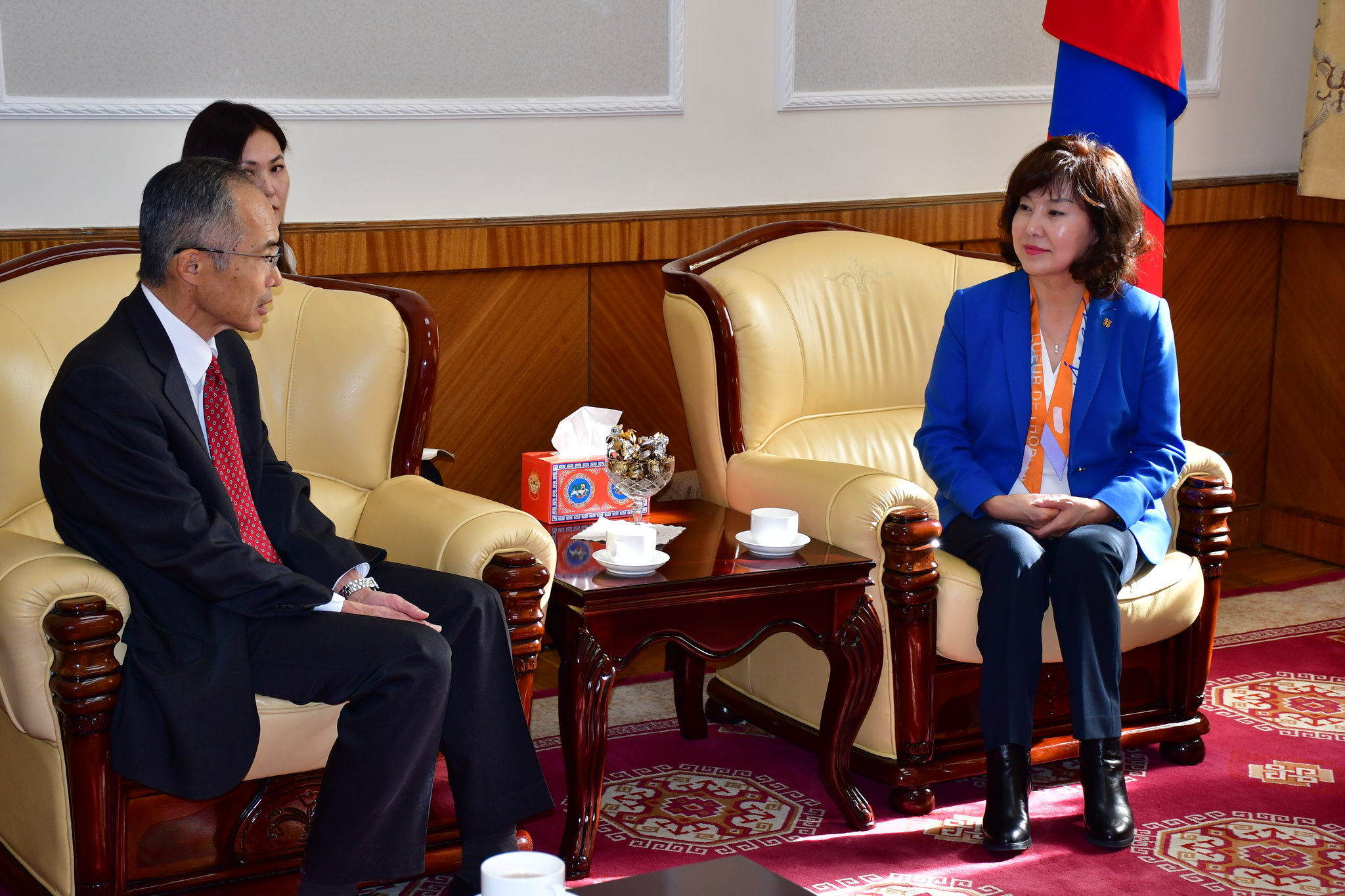 Эрүүл мэндийн сайд Д.Сарангэрэл Япон Улсаас Монгол Улсад суугаа Онц бөгөөд Бүрэн Эрхт Элчин сайд Такаока Масато-г үүрэгт ажлаа дуусгаж, нутаг буцахтай холбогдуулан хүлээн авч уулзлаа.