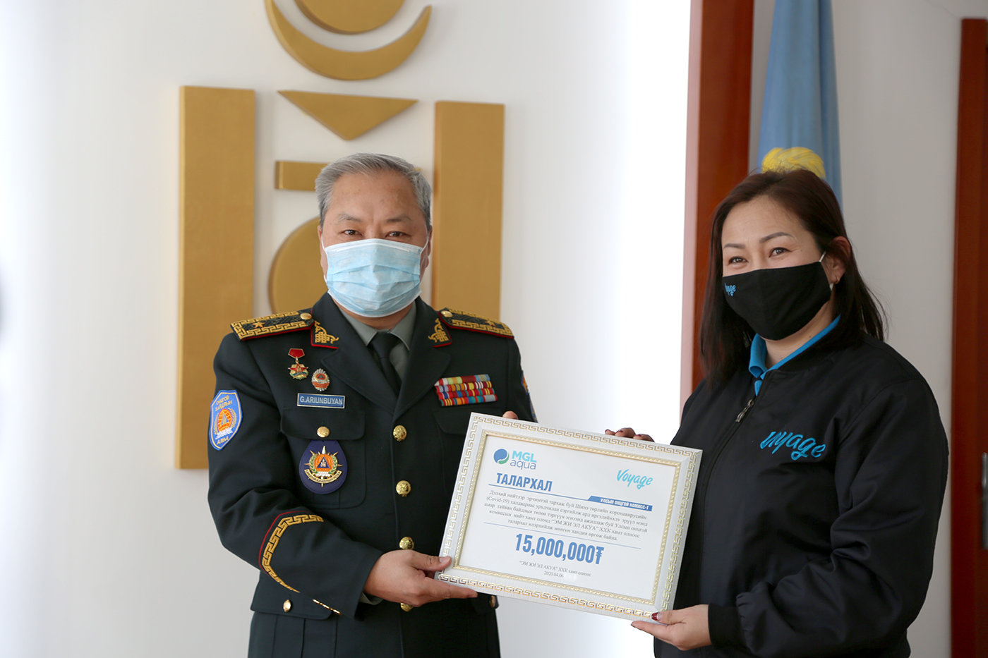 Коронавируст халдвараас урьдчилан сэргийлэх үйл ажиллагаанд дэмжлэг үзүүлж “Хуа Мей Да” ХХК-иас 10 сая төгрөгийг, “MGL Aqua” ХХК-аас 5 000 000 төгрөгийн өртөг бүхий “Voyage” цэвэр усыг өнөөдөр Улсын онцгой комисст хүлээлгэн өглөө.