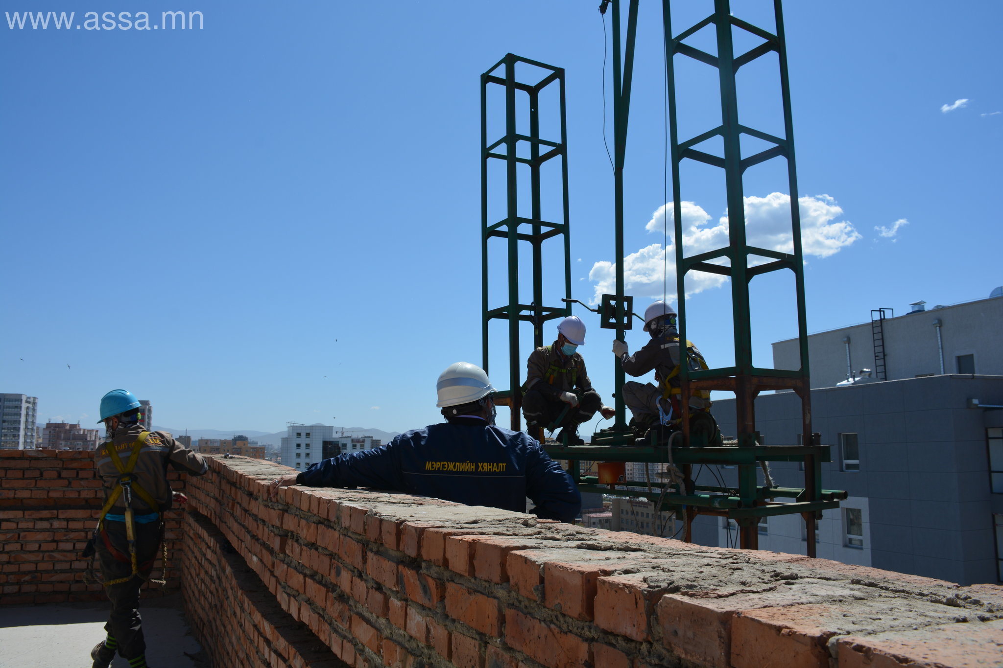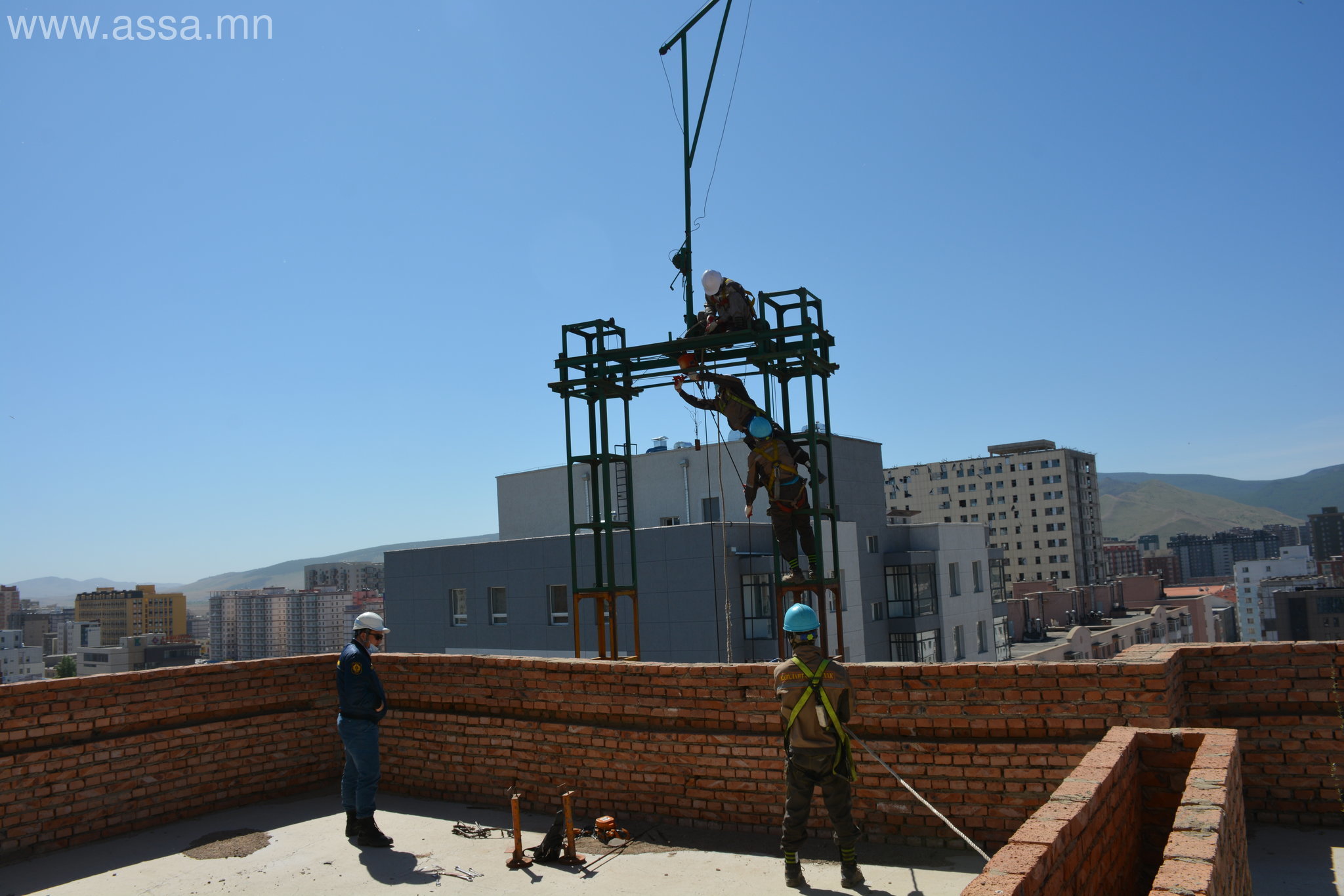 Нийслэлийн 84 дүгээр сургуулийн урд дутуу баригдаад зогссон 12 давхар орон сууцны барилга бий. Барилга барих явцдаа ашиглаж байсан өргөгч нь угсраатай чигээрээ орхигджээ. Иргэдийн гомдол удаа дараа ирсэн ч барилгын эзэн холбогдогч тодорхойгүй. Тиймээс НМХГ-аас тус барилгын өргөгчийн буулгах ажлыг “Жавхлант өрнөх” компанитай хамтран зохион байгуулсан юм. Өргөх механизмыг хариуцдаг Барилгын техникийн хяналтын улсын ахлах байцаагч нар ажилласан юм. 12 давхар барилгаас өндөр өргөгч краныг буулгах ажил бүтэн өдрийн турш үргэлжилдэг аж. Буулгаж буй хүмүүсийнх нь аюулгүй ажиллагаанд хяналт тавьж, өндөр дээр ажиллаж буй хүмүүсийн хөдөлгөөн бүрийг нь ажиглаж, анхааруулна, иргэдийн аюулгүй байдлыг хангуулна гэдэг харахад амархан ч хариуцлагатай ажил. Тус барилгын оршин суугчид Өргөгч краныг нь буулгаж байгаад баярлаж байсан ч “Энэ барилга зөвшөөрөлгүй баригдаад, одоо ажил нь зогсчихсон. Хүүхдүүдийн аюулгүй байдлаа бодсон ч, хотын өнгө үзэмжээ бодсон ч тэр барилгыг нь ч бас буулгачихвал таарна” хэмээн ярьж байсан. Мөн “Барилгыг явган хүний зам руу оруулж барьсан, барилга баригдлаа гэхэд ногоон байгууламж, хүүхдийн тоглоомын талбай, автомашины зогсоол байхгүй. Ийм газар яах гэж анхнаасаа зөвшөөрөл олгодог байна аа” гэж уцаарлах иргэн ч байв. Энэ бол хот төлөвлөлт хариуцдаг байгууллагын нэгэн хариуцлагагүй үйлдэл мөн аж.