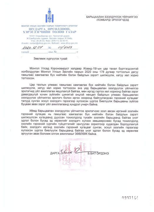 Бүх нийтийн бэлэн байдлын зэрэгт шилжүүлсэнтэй холбогдуулан ШӨХТГ-аас ломбардтай холбоотой зарим ажлыг эхлүүлжээ. Барьцаалан зээлдүүлэх үйлчилгээ эрхлэгчээс зээл авсан иргэний зээлийн гэрээний хугацаа дууссан тохиолдолд: