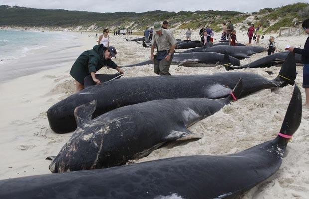 Эрэг дээр хаягдсан халимуудыг аварлаа