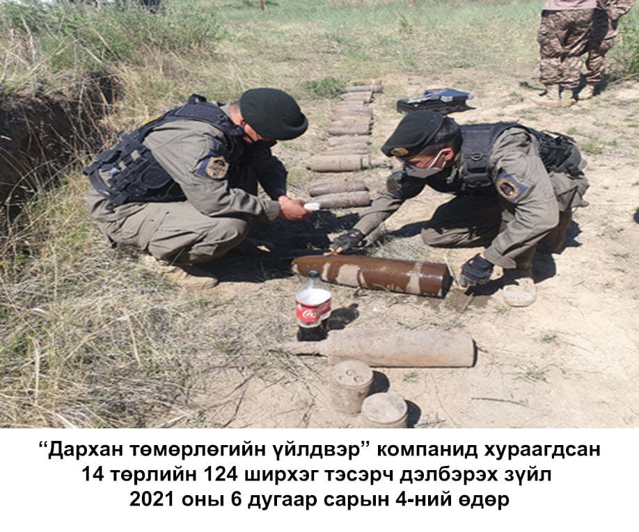 Зөвхөн өнгөрсөн жил гаруйн хугацаанд Зэвсэгт хүчний ангиудын орон тооны болон орон тооны бус тэсэрч дэлбэрэх зүйлийн хайгуул, устгалын бүлэг нь их, бага калибрын буудлагын зэвсгийн сум, галт хэрэглэл, төрөл бүрийн гранат зэргийг олноор нь илрүүлж, тэдгээрийг устгах, аюулгүй болгох ажлыг хэрэгжүүлсэн юм.