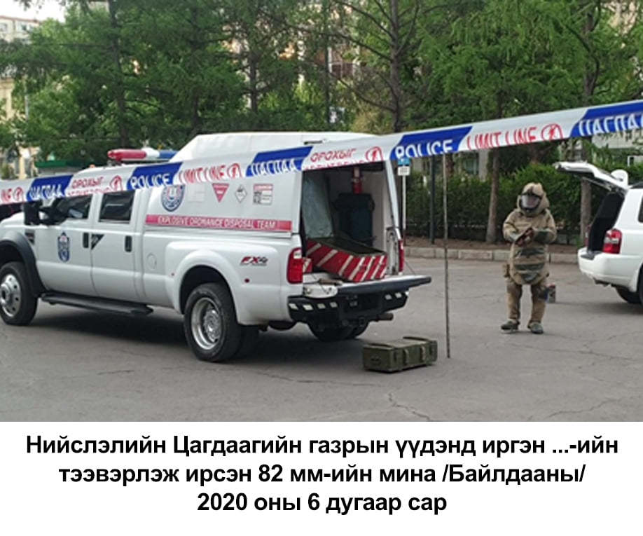 Иймд иргэн, аж ахуйн нэгж, байгууллагууд хэрэв цэргийн зориулалттай тэсэрч, дэлбэрэх зүйлийг олсон, илрүүлсэн эсвэл байж болзошгүй гэж үзвэл холбогдох дүрэм, журмын дагуу уг зүйлийг хөндөх, хөдөлгөхийг хатуу хориглох бөгөөд тухайн газар оронд аль болох хүн, мал, амьтныг ойртуулахгүйгээр тэмдэглэн яаралтай цагдаагийн байгууллагад мэдэгдэж, улмаар мэргэжлийн бүлгийн бүрэлдэхүүнийг иртэл хамгаалалтад авхуулах шаардлагатай байгааг хатуу анхааруулъя.