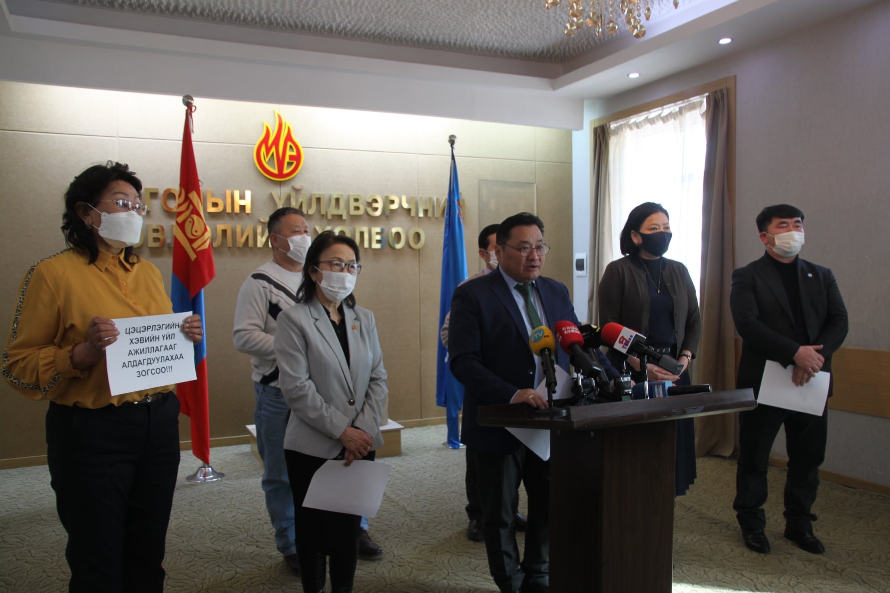 МҮЭ-ийн холбооны ЕНБД Х.Буянжаргал Хэвлэлийн бага хурлын зорилгыг танилцуулж, орон нутагт цалингаа бүтэн авч чадаагүй, ажлын байрны баталгаандаа санаа зовниж байгаа тухай санал гомдол ирүүлэх болсон талаар мэдээлэл өгөөд маргааш МБШУҮЭХ, Сургуулийн өмнөх ҮЭ-ийн хороо, МҮЭ-ийн холбооноос хамтарсан тайван жагсаал хийх болсон гэлээ.