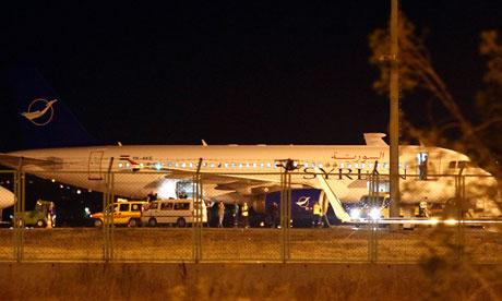 Туркийн байлдааны онгоцууд Сирийн зорчигч тээврийн онгоцыг Москвагаас Дамаск руу нисч байх үед нь хүчээр зогсоон, шалгасан байна. 180 хүний багтаамжтай Airbus А320 онгоц Москвагаас Сирийг зорин 35 зорчигчтой нисч явжээ. Тус онгоцонд зэвсэг тээвэрлэж яваа гэсэн мэдээлэл Туркийн талд ирсэн учир тус улс өөрийн агаарын орон зайгаар дамжин өнгөрч яваа онгоцыг саатуулан шалгах эрхтэй хэмээн үзэж, ийм алхам хийжээ. Онгоцыг Анкара хотын Эсенбога нисэх буудалд газардуулан шалгалт хийгээд хэдэн цагийн дараа нисэхийг зөвшөөрчээ.