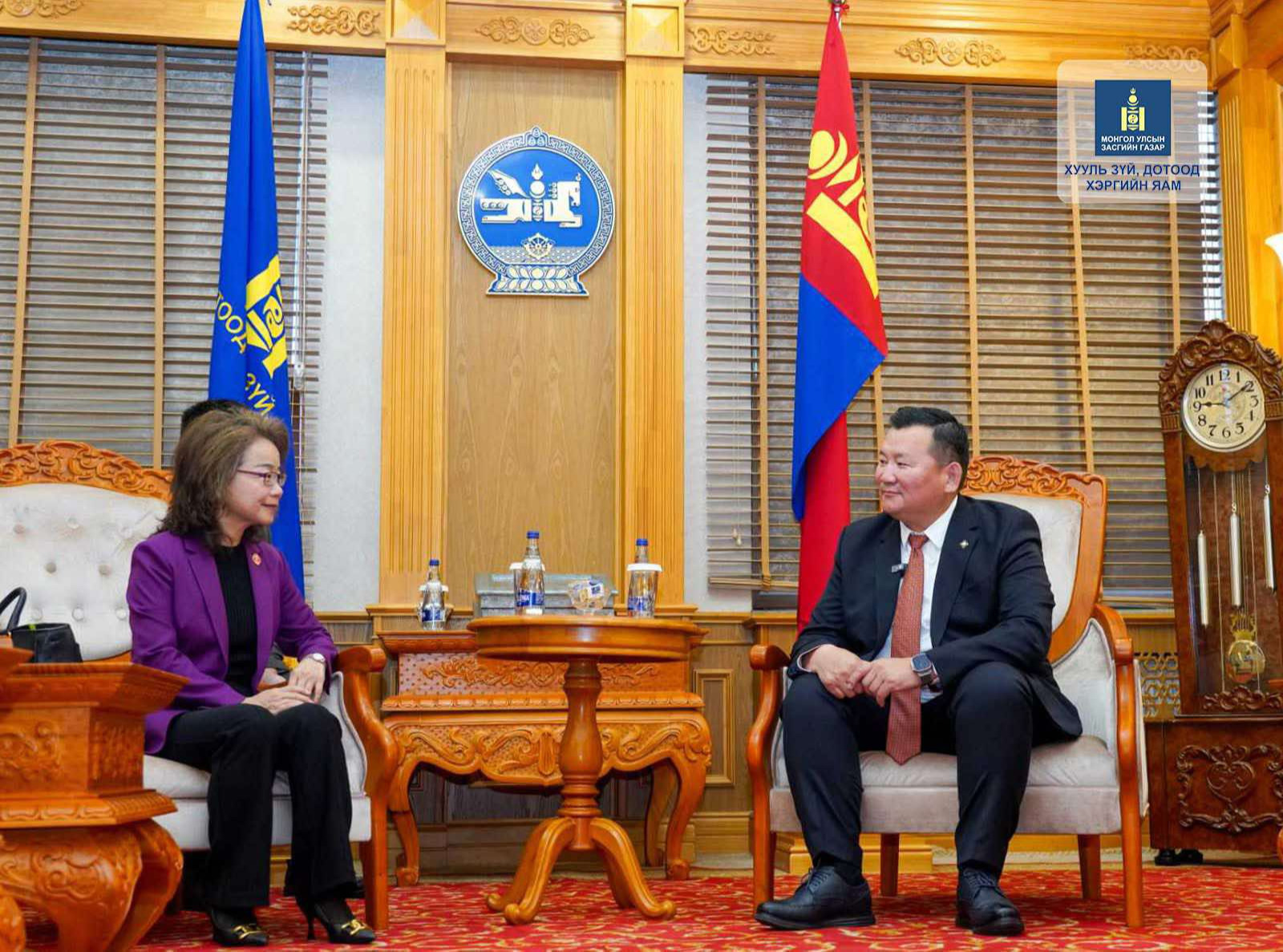 Хууль зүй, дотоод хэргийн сайд Л.Мөнхбаатар өнөөдөр Бүгд Найрамдах Хятад Ард Улсаас Монгол Улсад суугаа Онц бөгөөд Бүрэн эрхт Элчин сайд Шэнь Миньжуанийг хүлээн авч уулзлаа. Уулзалтын эхэнд хатагтай Элчид сайд Хууль зүй, дотоод хэргийн сайд Л.Мөнхбаатарт хандан шинээр томилогдсон албанд нь баяр хүргэж, амжилт хүслээ.Улмаар БНХАУ-ын Төрийн зөвлөлийн гишүүн, Нийгмийг аюулаас хамгаалахын сайд Ван Сяохунаас баяр хүргэж илгээсэн хүндэтгэлийн захиа болон энэ оны 9 дүгээр сард зохион байгуулагдах Дэлхийн олон нийтийн аюулгүй байдлын хамтын ажиллагааны олон улсын чуулга уулзалтад оролцох урилгыг тус тус уламжлан гардууллаа. Л.Мөнхбаатар сайд хариу талархал илэрхийлээд “Өнөө цагийн нийгмийн аюулгүй байдалтай холбогдон үүсэж байгаа сорилт бэрхшээлүүдийг хамтын хүчин чармайлт, түншлэлээр даван туулах, олон улсын хамтын ажиллагааг бэхжүүлэх өндөр ач холбогдолтой дээрх чуулга уулзалтад оролцоно” гэдгээ мэдэгдлээ.