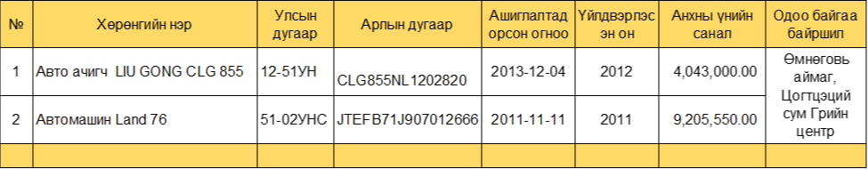 Дуудлагаар худалдах хөрөнгийн танилцуулга: