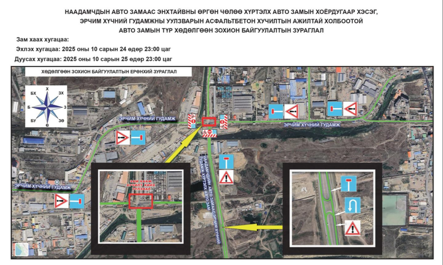 Эрчим хүчний гудамжны уулзварыг аравдугаар сарын 24-ний 23:00 цагаас нэг хоног хааж, асфальтбетон хучилтын ажил хийнэ