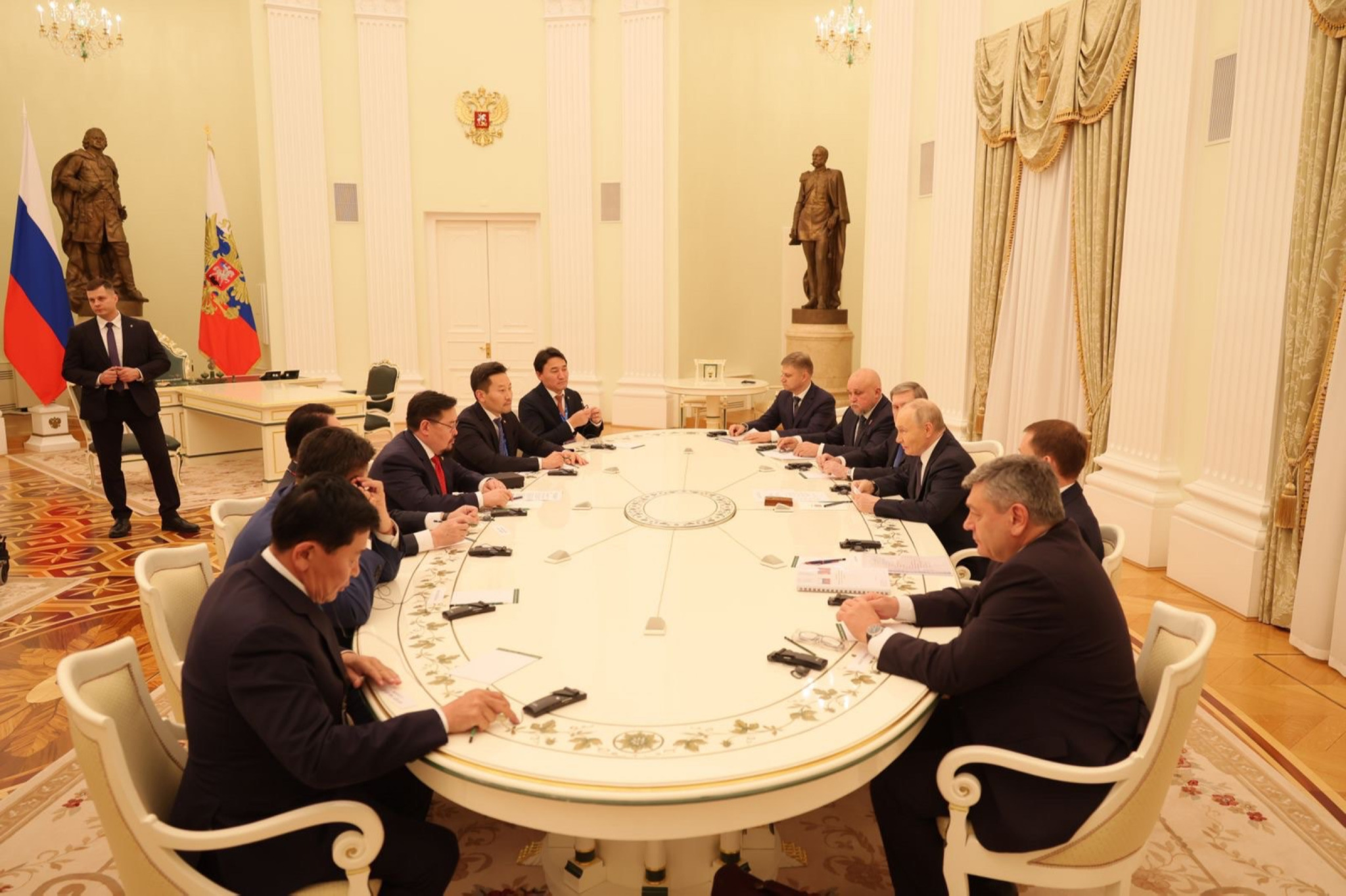 Ерөнхий сайд Г.Занданшатар өнгөрсөн 9 дүгээр сард Дорнын эдийн засгийн 10 дугаар чуулга уулзалтад оролцох үеэрээ ОХУ-ын Ерөнхийлөгч В.В.Путинд бараалхсан бол мягмар гарагт (2025.11.18) ШХАБ-ын гишүүн орнуудын Засгийн газрын тэргүүн нарын зөвлөлийн өргөтгөсөн хуралдаанд оролцох үеэр дахин бараалхлаа.