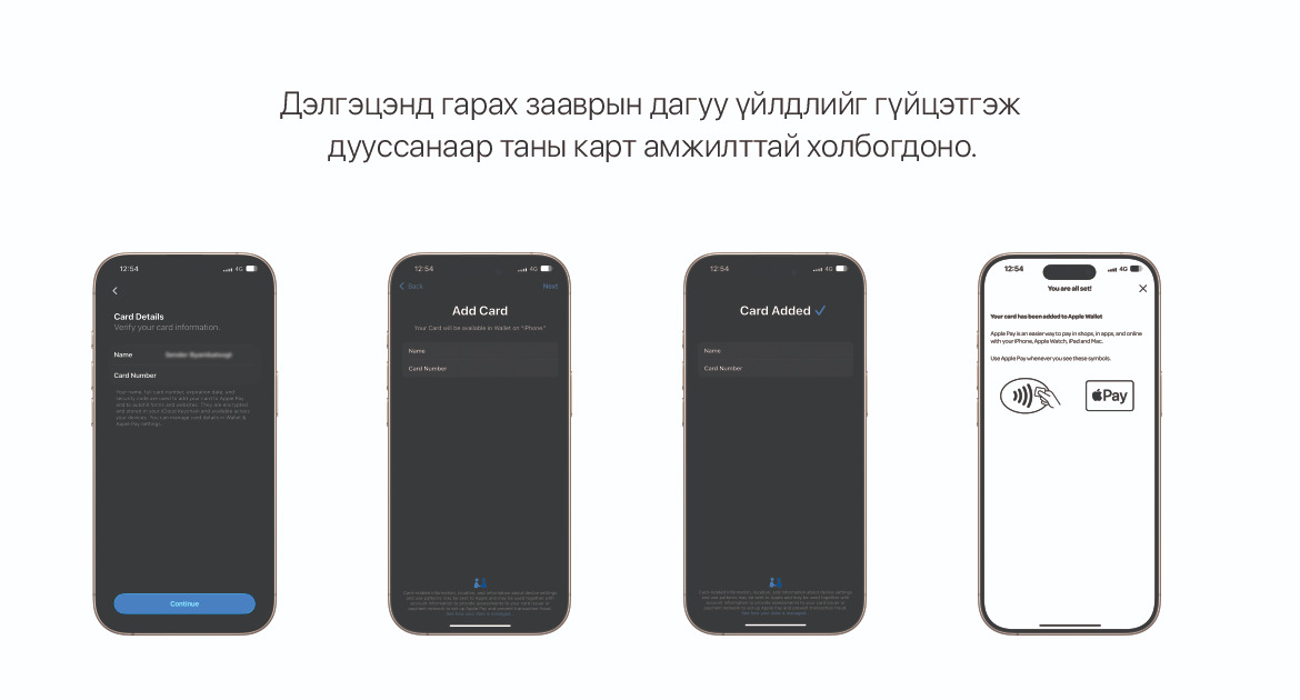 Голомт банк дэлхийд 800 сая гаруй хэрэглэгчтэй Apple Pay төлбөрийн системд картаа холбох боломжийг нэвтрүүлж, iPhone, Apple Watch, Mac болон iPad ашиглан төлбөр тооцоогоо хялбар гүйцэтгэх цоо шинэ боломжийг өөрийн харилцагчдадаа арилжааны банкнуудаас анхлан олгосон байдаг. Apple Pay төлбөрийн хэрэгсэлд өмнө нь зөвхөн Mastercard болон Т брэндийн картыг холбох боломжтой байсан бол одооноос эхлэн Visa брэндийн картыг холбох шийдлийг шинээр нэвтрүүллээ. Ингэснээр Голомт банкны харилцагчдын хувьд Apple Pay-д холбох боломжтой картын сонголт илүү өргөн болж байна. Голомт банк нь арилжааны банкнуудаас Visa брэндийн кредит болон дебит картыг өөрийн харилцагчдадаа хамгийн олон төрлөөр хүргэж буй. Үүнд биет картаас гадна онлайнаар идэвхжүүлэн ашиглах боломжтой виртуал карт ч багтана. Та Apple Pay-дээ Голомт банкны Visa брэндийн картыг холбон ашиглахыг хүсвэл юун түрүүнд ЭНД дарж, картуудын дэлгэрэнгүй нөхцөлтэй танилцаад шинэ картаа захиалаарай. Харин картаа захиалсны дараа SocialPay аппликэйшнээр дамжуулан Apple Pay-д картаа холбох юм.