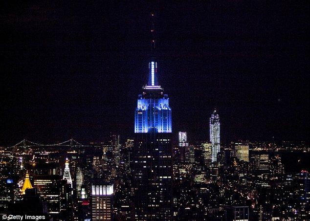 Б.Обамаг ялмагц Нью-Йоркийн Эмпайр Стэйт Билдингийн гэрлийг цэнхэр өнгөөр гэрэлтүүлжээ.