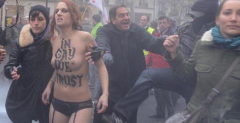 Францын нийслэл Парист өнгөрсөн амралтын өдөр ижил хүйстнийг гэр бол болохыг эсэргүүцсэн жагсаал болж үүнийг дэмжсэн украйны нүцгэлэгч эмэгтэйчүүдийг зодсон байна. Хагас нүцгэн эмэгтэйчүүд жагссан олны өмнө гарч “Бид гейчүүдийг дэмжиж байна” гэж хашгиралдсан нь жагсагчдын дургүйцлийг улам өдүүлжээ. Ингэснээр жагсагчид бүсгүйчүүдийг газар унаган зоджээ. Жагсаалыг сурвалжилж байсан сэтгүүлч “Хүмүүс бүсгүйчүүд рүү халдажтолгой түрүүгүй цохилон газар унасан хойно нь ч нуруу, толгой руу нь өшиглөж байсан” гэжээ.