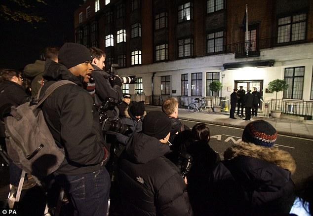 Гэгээн Жеймсийн эмнэлгийн гадна сураг чимээ хүлээсэн хэвлэл мэдээллийнхэн