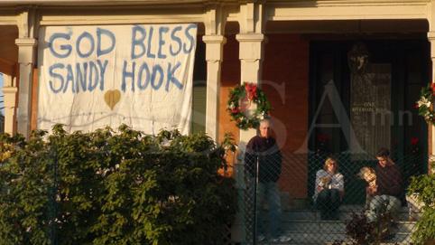 Аллага болсны маргааш гэхэд л аймшигт хядлага болсон Ньютаун, Сэнди-Хук хот руу АНУ-ын өнцөг булан бүрээс янз бүрийн муж хотын дугаартай машинууд цувж тэр орчмын гудамж зам битүү бөглөрөөд байна. “Би энэ хотод өссөн, чимээ аниргүй, аюулгүй ямар сайхан газар билээ. Ийм явдал энд гарсан гэхэд итгэхгүй байна” гэж оюутан Элизабет хэлжээ. Хотын гудамжийг цагдаа нар хамгаалалтад авсан хэдий ч газар сайгүй хүмүүсийн тавьсан тоглоом, цэцэг, лаа үргэлжилж байгаа гэнэ. Чихмэл хулгана, нохой, шинэ жилийн буга, амьд цэцэг гудамжинд эцэс төгсгөлгүй үргэлжилсэн харагдана. Орон нутгийн сүм хүнээр дүүрч, ханандаа “Ямарч буруугүй бяцхан хүүхдүүд минь та нар бидний сэтгэл зүрхэнд мөнхөд оршино” гэсэн бичээс хадсан байна.