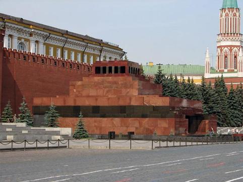 1924 онд Владимир Ильич Ленинийг нас барсн ыдараа улаан талбайд модон мавзолей байж байгаад 1930-аад онд өнөөгийн энэ гантиг чулуун мавзолейг барьсан юм. Эх орны дайны үед аюулаас хамгаалах үүднээс Лениний шарилыг Сибирь рүү зөөж Тюменьд аваачсан юм.